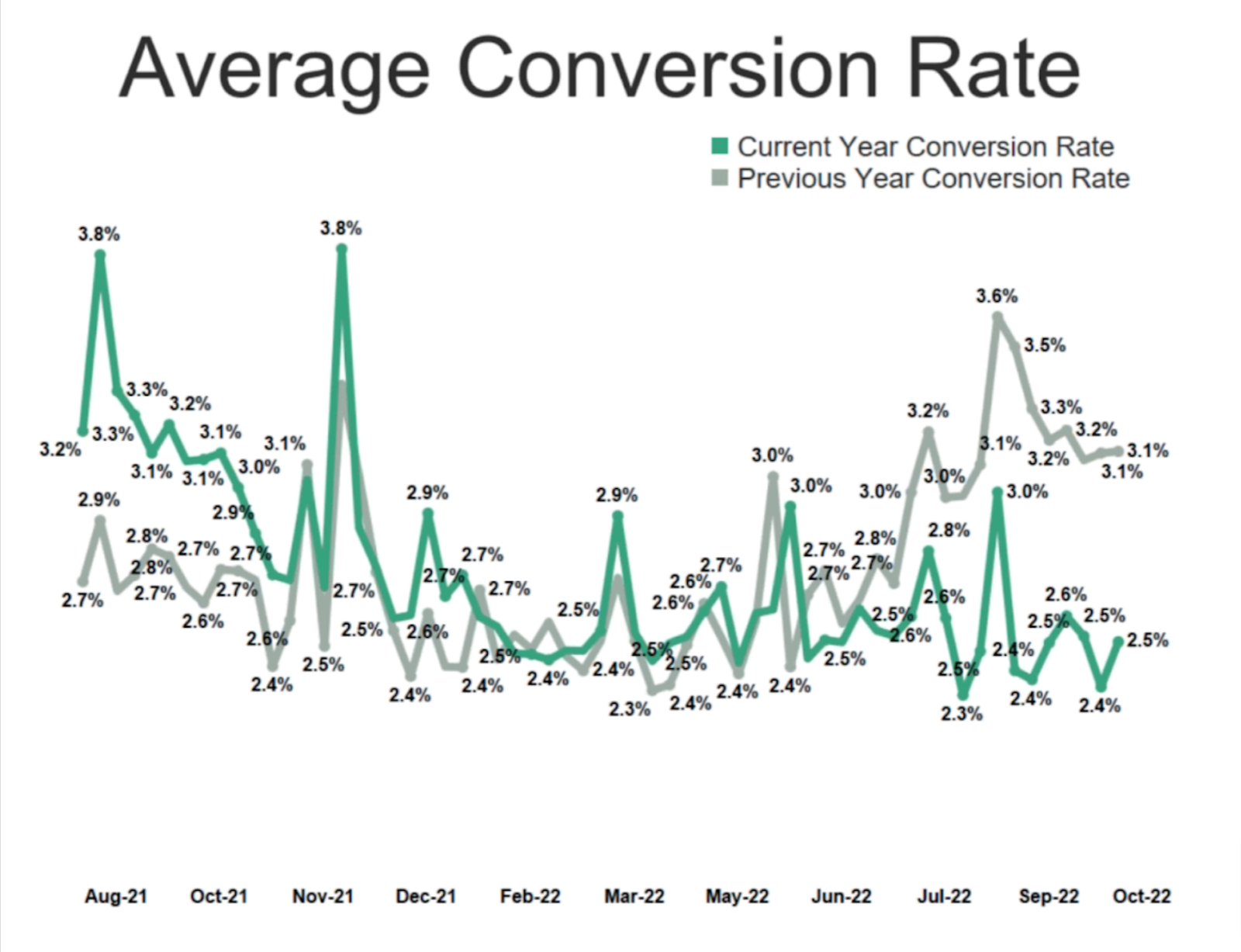 Delivering a seamless digital experience is really about removing barriers along the customer journey. As you can see in the graph below, retail digital conversion rates this year have been much lower than in previous periods.