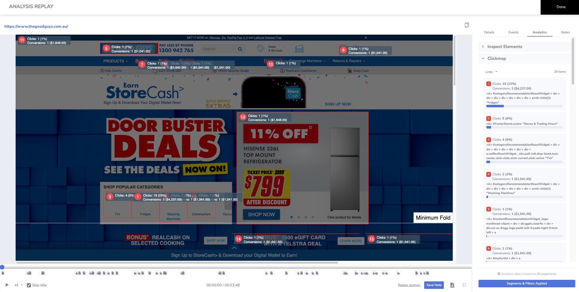 Insightech overlays click map data in each session replay to visualise which page content drives the most revenue.