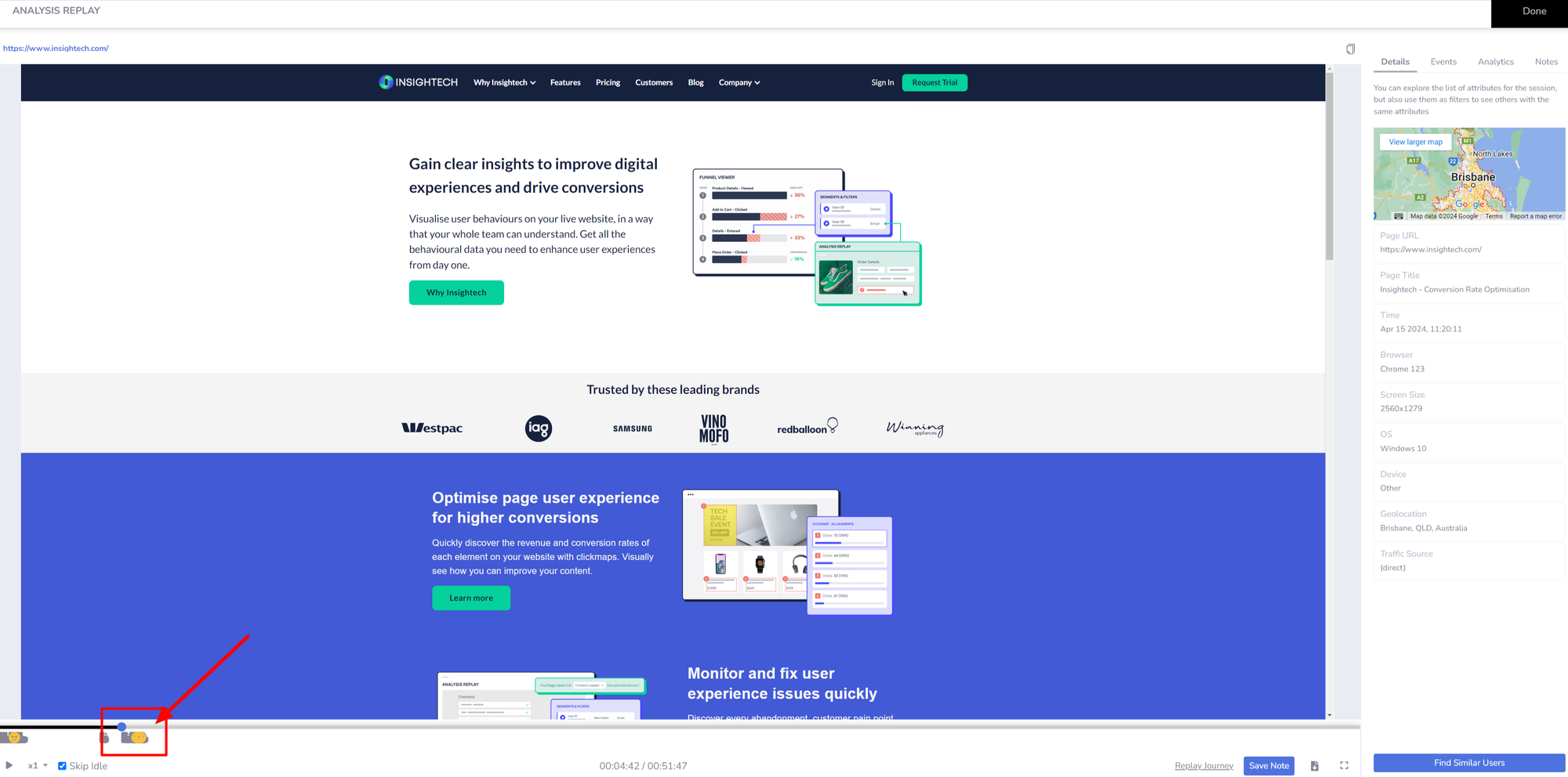 Watch the replay to discover moments of user frustration