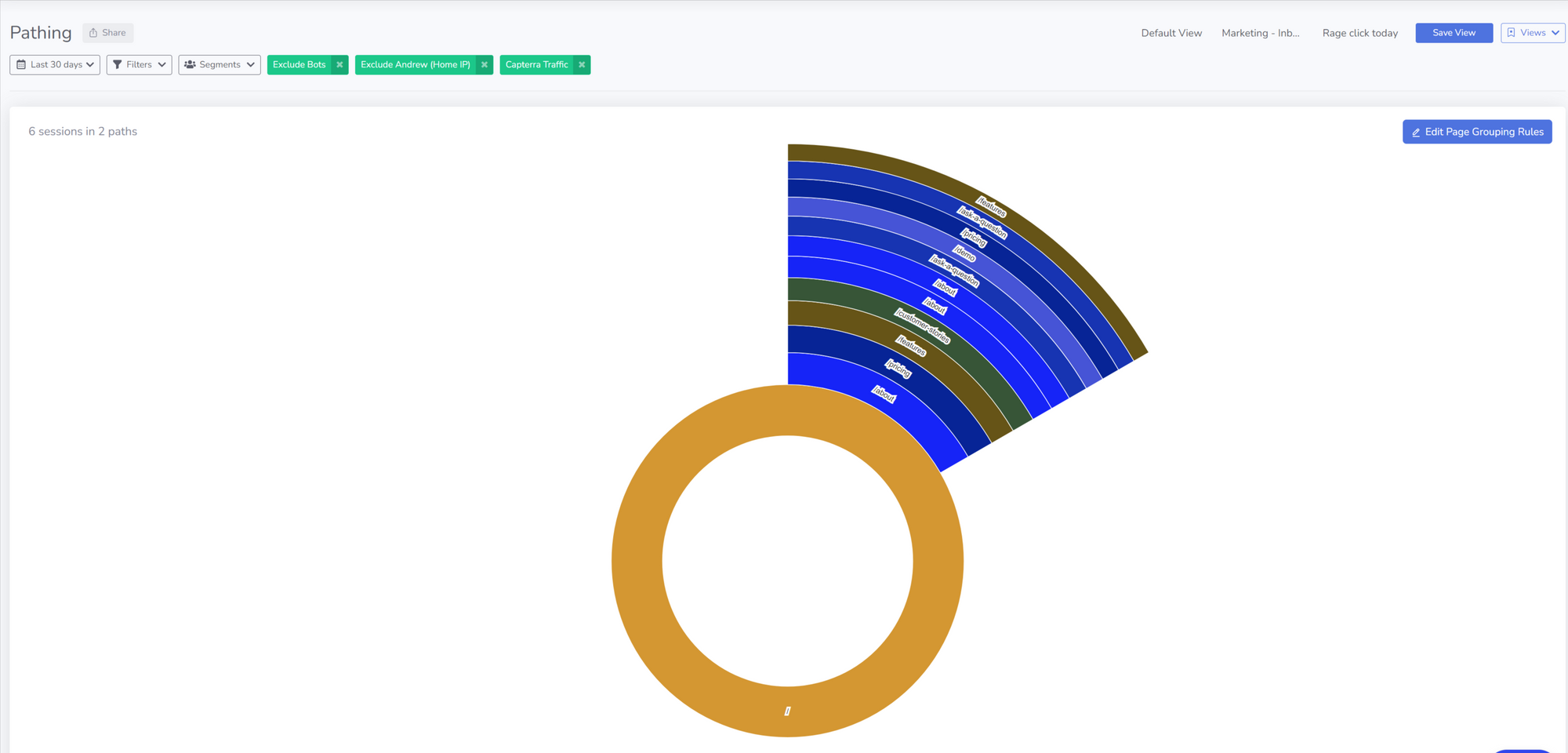 Insightech’s pathing report for the 6 Capterra visitors (last 30 days)