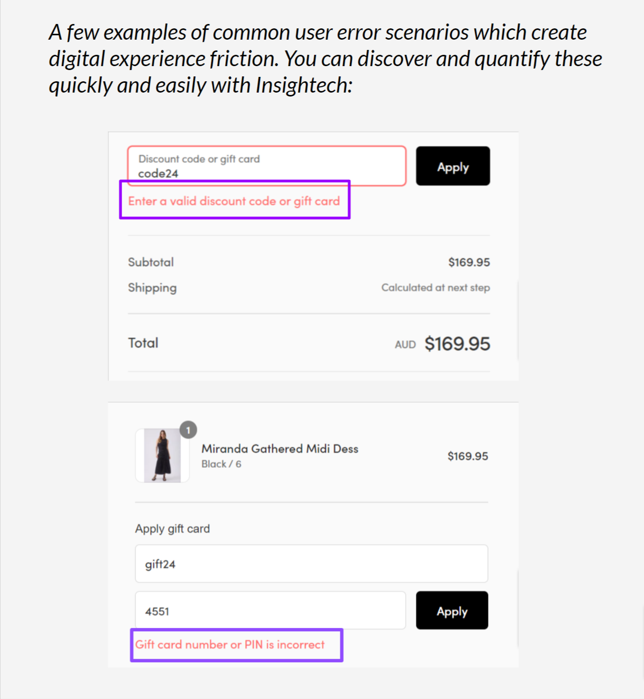 Campaigns like BFCM and the festive sales period offer a golden opportunity for online retailers to learn what works and what doesn’t. There are two primary types of insights: Friction and Behavioural. While Friction Insights delve into technical aspects like bugs, errors and confusion, Behavioural Insights answer pivotal questions about user interactions and preferences.