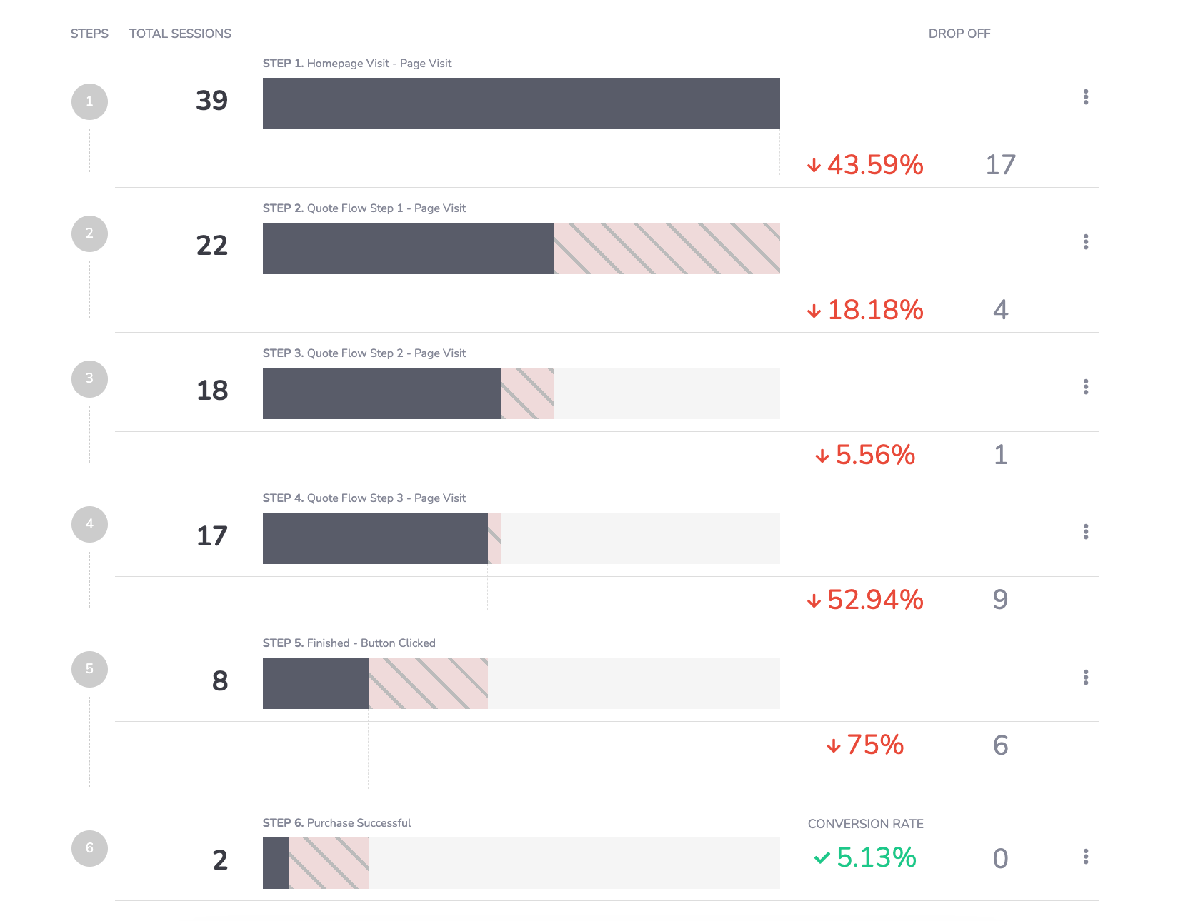 - Understanding if certain audience segments experience higher drop-off rates at different funnel stages, aiding in targeted problem-solving.