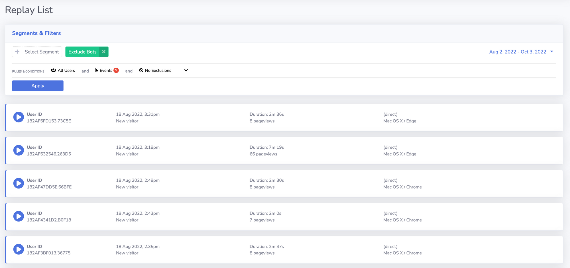 Step 3: To delve deeper, select ‘View Sessions’. This will show you replays corresponding to users who have reached a specific stage of your funnel.